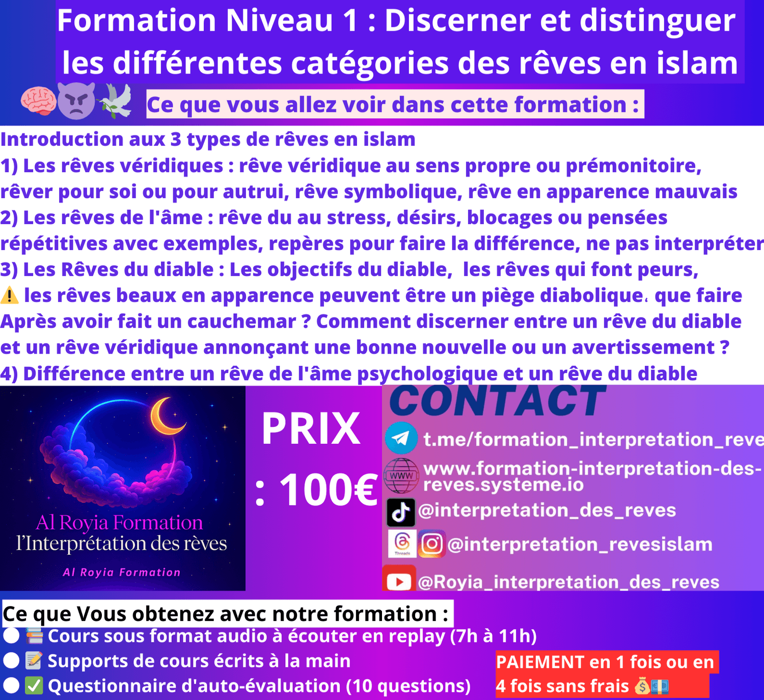 ✨ C’est la première fois qu’une formation structurée en français explique en détail comment distinguer un rêve véridique, un rêve du nafs et un rêve trompeur.